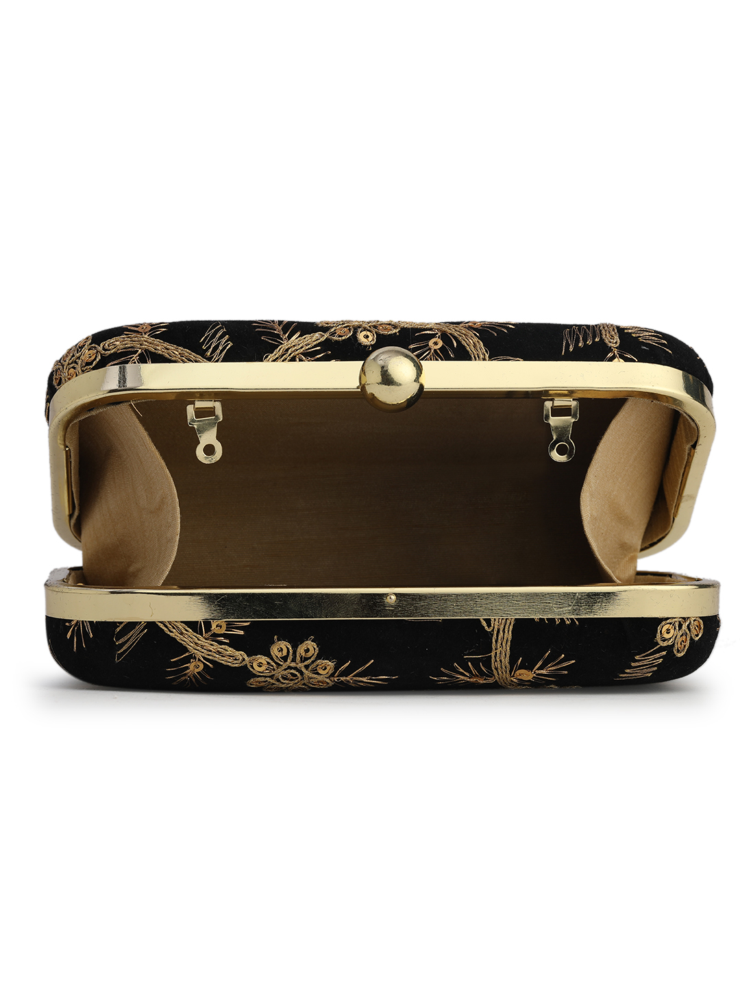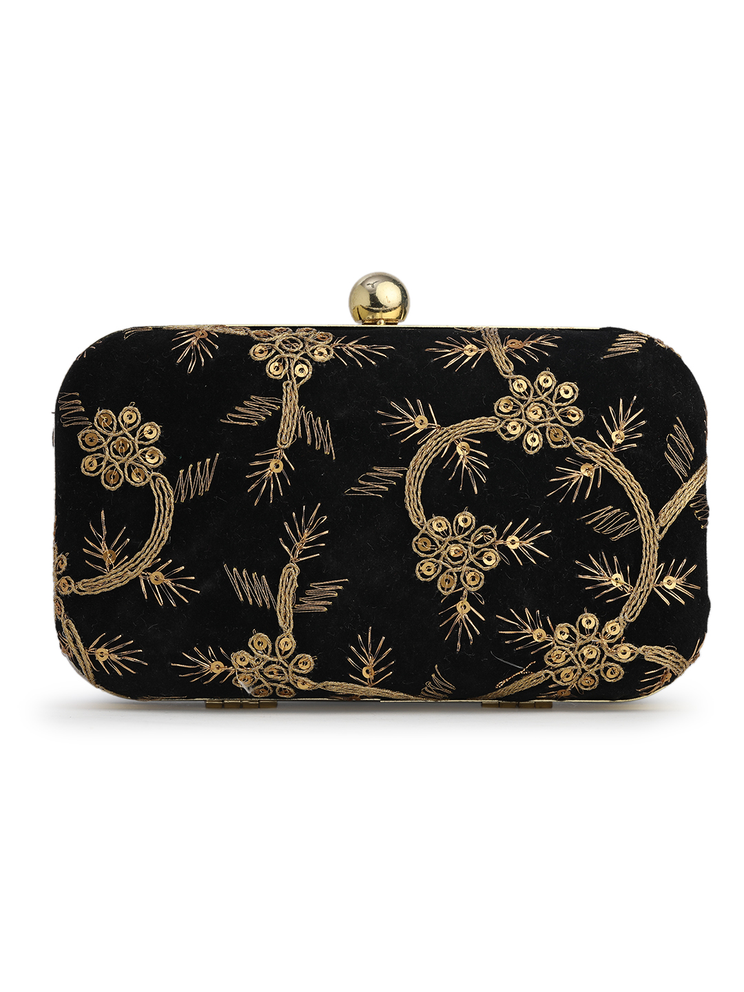 Combo Of Boho Bag And Black & Gold Embroidered Box Clutches For Girls and womens
