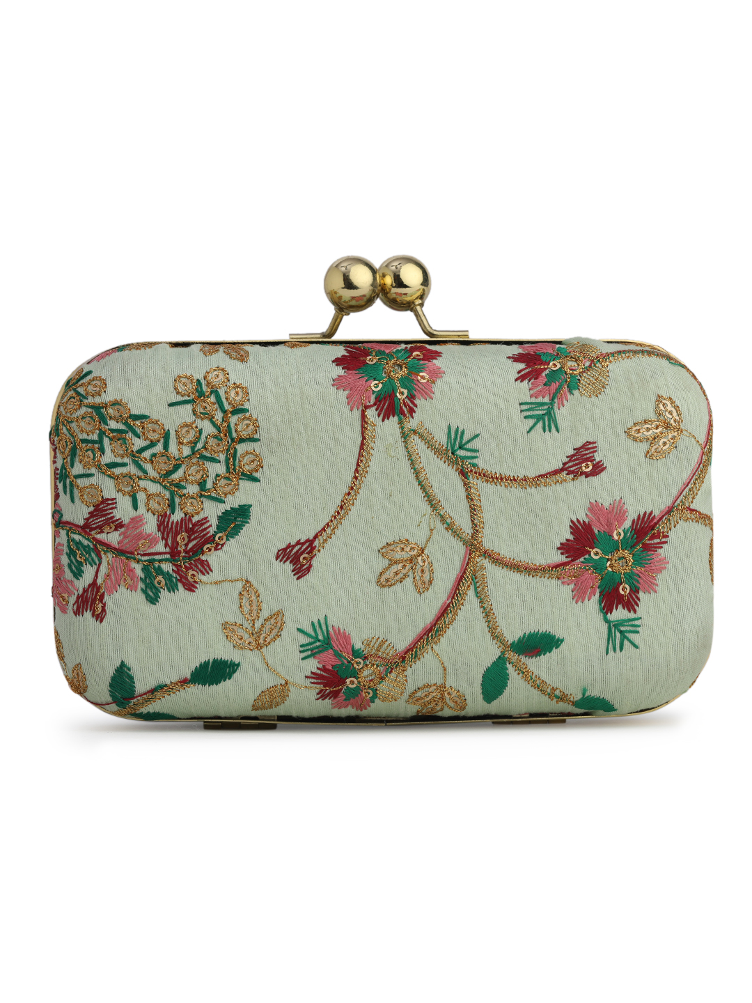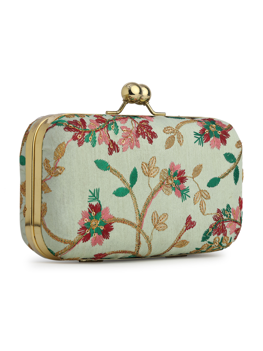 Combo Of Boho Bag And Off White & Gold Embroidered Box Clutches For Girls and womens