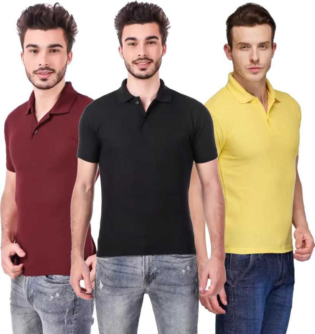 Men's Polo Neck Short Sleeve Casual Tshirt Combo of Maroon, Orange, Yellow colors (Pack of 3)
