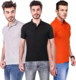 Men’s Polo Neck Short Sleeve Casual Tshirt Combo of Black, Orange, Grey colors (Pack of 3)
