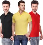 Men’s Polo Neck Short Sleeve Casual Tshirt Combo of Red, Black, Yellow colors (Pack of 3)