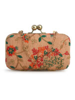Off White & Gold Embroidered Box Clutches For Girls and womens(01)