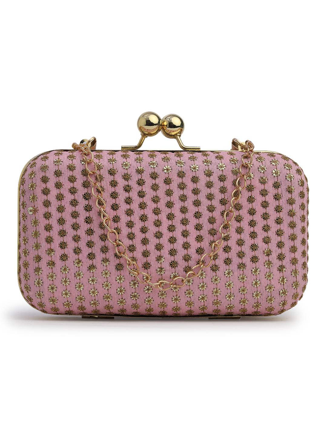 Pink & Gold Embroidered Box Clutches For Girls and womens