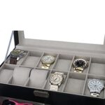 Presents Luxury 12 Slot Watch Box for Men & Women Lockable Leather Watch Organizer with Glass Lid, Soft Velvet Cushions, Premium Display & Storage Case for Watches (Black)