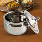 Store your ghee neatly and hygienically with this Stainless Steel Ghee Pot. Crafted from quality, rust-resistant stainless steel, it offers durability, easy maintenance, and a sleek look that suits any kitchen. The pot comes with a snug-fitting lid to protect the contents from dust and moisture while retaining aroma and freshness. Ideal for storing ghee, oil, or small kitchen ingredients, this pot is easy to clean and for everyday use in Indian households.