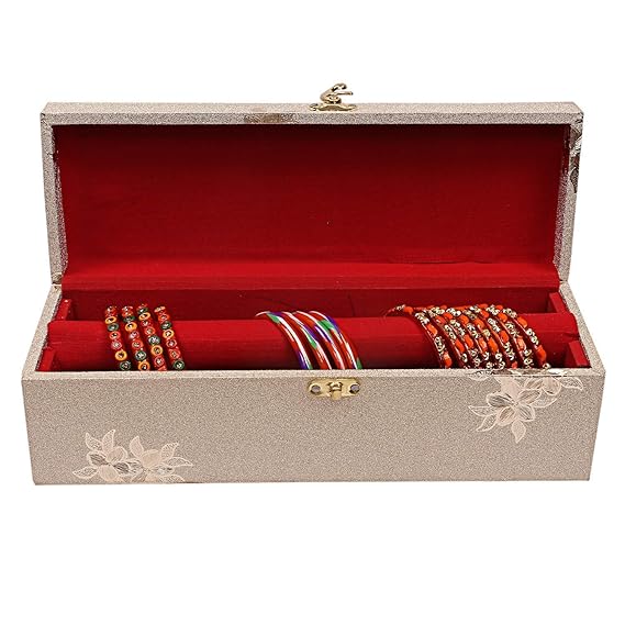 Velvet Bangle Box for Women Jewellery Storage Organizer with Compartments | Bridal Bangle Case for Wedding & Travel | Traditional Indian Bangle Holder Box(2 rod )